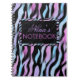 Stylish notebook with abstract zebra print pattern in black, blue, violet and pink colors, made of my original acrylic painting.