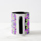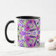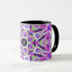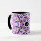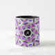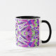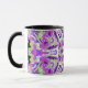 Coffee mug with abstracted ornamental background lilac, purple and green shades on white background