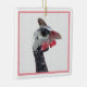 at christmass as a hanging decration for the chritmass tree.. its white porcline or cramic but very well made with added photo on one side.. also has a lovley red bag to keep it in.. execlent printed text in bold and black stands out well aganst the blue background of the photo.