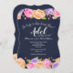 A stunning floral invitation with a navy-blue background and an abundance of pink, lavender, and yellow flowers bordering the top and bottom edges of the card. (Design by Freepik). <br/><br/>The card is easy to customise with your wording, font, font colour and choice of six paper types.<br/><br/>Not exactly what you're looking for? All our products can be custom designed to meet your needs at no extra charge.<br/><br/>Simply contact us at askcottonlamb@gmail.com<br/><br/>Coordinating products available: