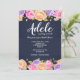 A stunning floral invitation with a navy-blue background and an abundance of pink, lavender, and yellow flowers bordering the top and bottom edges of the card. (Design by Freepik). <br/><br/>The card is easy to customise with your wording, font, font colour and choice of six paper types.<br/><br/>Not exactly what you're looking for? All our products can be custom designed to meet your needs at no extra charge.<br/><br/>Simply contact us at askcottonlamb@gmail.com<br/><br/>Coordinating products available: