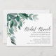 Chic bridal shower brunch invitation features lush green eucalyptus leaves and foliage, illustrated in watercolor. Personalise with your bridal brunch details aligned at the right. Cards reverse to solid forest green.