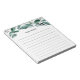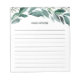 Chic botanical notepad features a top border of green watercolor foliage and eucalyptus leaves. Personalise with your name or choice of personalisation in handwritten script lettering. Lined.