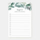 Chic personalised note pad features a top border of green watercolor foliage and eucalyptus leaves. Personalise with two lines of custom text in modern block and handwritten script lettering; shown with "things to do" and your name. 11 lines with checkboxes help you keep track of all your important tasks!