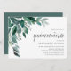 Chic botanical invitations for elegant quinceanera celebrations feature watercolor eucalyptus leaves and green foliage cascading from the upper left corner. Customise with your quinceanera details aligned at the right and embellished with chic calligraphy. Invitations reverse to solid forest green.