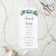 Our chic botanical wedding program features your ceremony details topped by a spray of watercolor greenery and green eucalyptus leaves. Reverse side lists the members of your wedding party with easily editable text fields. Coordinates with our Abundant Foliage wedding invitation collection. Use the template fields to add your ceremony and bridal party information, and then click "Customise It" to reposition elements if needed. Need help? Contact me via the "Ask this Designer" link on this page.