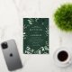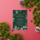 Elegant wedding invitations featuring your wedding details nestled inside of a gold foil frame surrounded by eucalyptus, ferns, and other rich greenery with a dark green background. The modern botanical wedding invitations reverse to a solid green background. Designed to coordinate with our Abundant Greenery wedding collection.