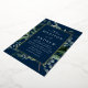 Elegant wedding invitations featuring your wedding details nestled inside of a rectangular gold foil frame surrounded by eucalyptus, ferns, and other rich greenery with a navy blue background. The modern botanical wedding invitations reverse to a solid navy background. Designed to coordinate with our Abundant Greenery wedding collection.