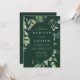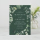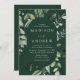 Elegant wedding invitations featuring your wedding details framed within an oval border of eucalyptus, ferns, and lush greenery against a deep green background. The modern botanical design reverses to a coordinating solid green back, creating a polished look. Part of our Abundant Greenery wedding collection, these invitations are perfect for garden, woodland, or nature-inspired celebrations.