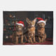 An enchanting scene captures the essence of cosiness and holiday spirit as furry companions adorned in Santa Claus hats gather around a crackling fireplace. The warmth emanating from the hearth creates a snug atmosphere for these adorable canines, while festive stockings hang in the background, enhancing the merry ambiance. The charming illustration portrays a timeless image of companionship and festive joy, perfect for celebrating the holiday season with a touch of canine charm