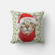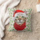 Fun holiday pillow for the cat lover and cat mum who is partial to the Abyssinian breed. Kitty wears a red Santa hat with Ho Ho Ho on it and a matching winter scarf with a holly and berry patterned background.