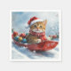 Abyssinian Cat in Sledge Let it Snow Christmas Napkin