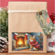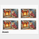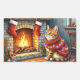 Abyssinian Cat Sitting by Fireplace with Christmas Rectangular Sticker