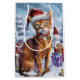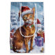 This festive design captures the joyful spirit of the holiday season, featuring an adorable pup wearing a Santa hat. The cat is nestled in a winter wonderland, complete with a snowman, a decorated Christmas tree, and beautifully wrapped presents. Snowflakes gently fall, adding a magical touch to the scene, while the vibrant colours of the holiday decorations create a warm and cheerful atmosphere.
