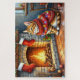 This warm and festive Christmas illustration features a graceful Abyssinian sitting beside a glowing fireplace, gently wrapped in twinkling Christmas lights with stockings hanging above. The breed’s sleek coat and curious expression add elegance and charm to this cozy holiday scene. Perfect for Abyssinian lovers, holiday décor fans, and Zazzle shoppers searching for unique Christmas artwork that celebrates their favorite cat breed.