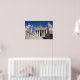 Poster of the Academy of Arts of Athens, Greece, with the statues of ancient Greek philosophers Plato (on the left) and Socrates (on the right). The statue of mythological Greek goddess Athena is behind Plato.