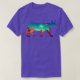 I give wanted to give this a 4 instead of a 5 because these Basic DARK T0shirts run unexpectedly SLIM or Narrow. Which is great if you do not have a potbelly, but I have a paunch. It isn't the shirt's fault that I've got a beer belly. The design and shirt itself is a quality cotton shirt. The color is more of a deep purple, but still a very pretty color. The Basic DARK T-shirts run a bit SLIMMER than the Basic Ts. The neck is a fraction narrower (or seems to be narrower) also. I'm a paunchy middle-aged woman and my neck is 12 inches (31cm) thick and the neckline fell about the same as in the photo of the man, and I had the desire to tug it a bit. So if you're a thick necked man or like loose shirts, be aware these are slimmer shirts. Once I get rid of my lockdown paunch it'll look great. The shirt washed well in cold water with no apparent bleeding. We don't have a dryer, so it hung dry. Did not shrink. Love the colors and the design. The design looks smaller on my shirt than it does on the model on-line. But still, it looks good on the shirt. The printing looks as it does on the model, just the size seems fractionally smaller. Washed garment in cold water, hung dry and design appeared unaffected.