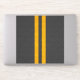 A golden yellow racing stripes accent in black carbon fibre style design decor. The carbon fibre print look suits automotive, modern, and industrial tastes and the vibrant vertical lines make for a dynamic design.