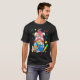 I give wanted to give this a 4 instead of a 5 because these Basic DARK T0shirts run unexpectedly SLIM or Narrow. Which is great if you do not have a potbelly, but I have a paunch. It isn't the shirt's fault that I've got a beer belly. The design and shirt itself is a quality cotton shirt. The color is more of a deep purple, but still a very pretty color. The Basic DARK T-shirts run a bit SLIMMER than the Basic Ts. The neck is a fraction narrower (or seems to be narrower) also. I'm a paunchy middle-aged woman and my neck is 12 inches (31cm) thick and the neckline fell about the same as in the photo of the man, and I had the desire to tug it a bit. So if you're a thick necked man or like loose shirts, be aware these are slimmer shirts. Once I get rid of my lockdown paunch it'll look great. The shirt washed well in cold water with no apparent bleeding. We don't have a dryer, so it hung dry. Did not shrink. Love the colors and the design. The design looks smaller on my shirt than it does on the model on-line. But still, it looks good on the shirt. The printing looks as it does on the model, just the size seems fractionally smaller. Washed garment in cold water, hung dry and design appeared unaffected.