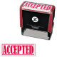 Perfect for approved documents and other business purposes, these rubber stamps include the word "ACCEPTED" inside a rectangular frame.