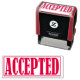 Perfect for approved documents and other business purposes, these rubber stamps include the word "ACCEPTED" inside a rectangular frame.