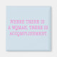 In pink text it reads: "Where there is a Woman, there is Accomplishment." The O's in the quote are actually the sign for Female.