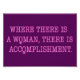 In pink text it reads: "Where there is a Woman, there is Accomplishment." The O's in the quote are actually the sign for Female.