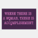 In pink text it reads: "Where there is a Woman, there is Accomplishment." The O's in the quote are actually the sign for Female.