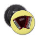 Very cute and compact little bottle opener. Also very fond of the magnet, both for sticking to the fridge and holding on to the bottle cap when trying to open it. Good quality print. As pictured.
