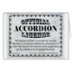 Official Accordion License. There are many activities involving various equipment, such as operating an automobile, aeroplane, etc., that require specialised training and licenses. Making music is something that usually requires training: lessons, practice, and rehearsals. Shouldn't it be required of the prospective musicians that they receive a license to operate the equipment, i.e., their musical instrument?