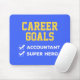 Career Goals in bright yellow with list with check boxes with check marks for accountant and superhero in white.