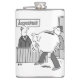 My cartoon will be appreciated by anyone who works in accountancy or finance perhaps. The image shows an accountant who is surprised to see a client enter his office carrying a giant piggy-bank. The black and white cartoon appears on the front of the flask.