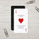 Custom business card template as the ace of hearts playing card with red heart and vintage style illustration of elegant damask pattern on the back.