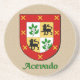 Hispanic surname * Acevado * Shield Sandstone Drink Coaster set on a parchment style background.