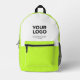 Acid Green and white | Personalised Business Logo and Text professional Printed Backpack