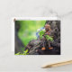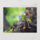 Acorn elf girl on birch with flowers - funny spring or summer postcrossing postcard