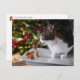 Acorn Elf gives Christmas present to cat Postcard
