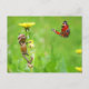 Acorn elf on dandelion with butterfly on the meadow - funny summer postcrossing postcard