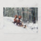 Acorn elves ride on sleigh - funny winter postcrossing postcard