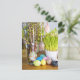 Acorn elves playing with Easter eggs - funny Easter postcard with decorated eggs