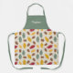 An apron with a pattern of acorn and its fall leaves on a light brown background and a customisable first name or text of your choice above on a greyish green background. A lovely gift for a friend who loves nuts. It could also be used in a store or in a garden when you're working!