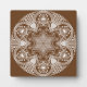This white mandala sits on a dark brown background. The colours are natural and comfortable. Part of the Howlsplann Mandala Collection.