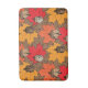 Fall colour pattern in browns and oranges, maple leaves and acorns.