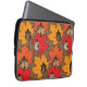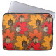 Fall colour pattern in browns and oranges, maple leaves and acorns.