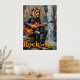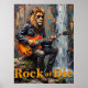 This striking painting captures a majestic lion, adorned with sunglasses and a leather jacket, delivering a powerful acoustic performance while perched on a log. Behind him, a vibrant waterfall plunges into a blue stream, creating a natural stage. The artist's use of bold, textured brushstrokes emphasises the rugged beauty of the setting and the "Rock or Die" attitude, bringing this unexpected concert to life.