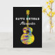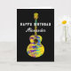 Colourful acoustic guitar artwork in funky psychedelic, vibrant pop art colours on black to celebrate the guitar player in your life. This fun colourful guitar with retro 70s typography personalised birthday card is ideal for a teenagers learning the instrument and guitar music lovers, it celebrates the energy and variety of this wonderful musical instrument. The perfect customisable birthday card for guitarists, musicians and music lovers. Original artwork by artist Catherine Sweetman