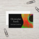 Guitar lessons business card, with an abstract guitar image filled with red and green colours on a black background. White and black lettering allows you to customise with your own information. The back is plain white for easy viewing, great for advertising and networking your musical business.