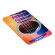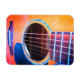 An acoustic guitar in oblong or slanted perspective, close-up vibrant image with bright colours in poster art style, showing wood grain, guitar strings in warm tones, a super avant garde music theme magnet great for guitar players and other musicians, composers, music lovers, PopArt fanatics, singer songwriters, music teacher or student ... a bold lively modern artwork with a classic musical instrument; for folks into art or music, jazz, rock, soul, blues, flamenco, dance, classical, fingerpicking, bluegrass, and other genres of music or visual art. This is one of my favourite contemporary guitar artworks! Happy blessings all. Music photo by M Sylvia Chaume, Canada.