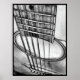 A cool acoustic guitar detail with top perspective looking down the neck to the sound hole and part of the bridge, with dynamic steel strings that can make that guitar ring! This is a Takamine cutaway style guitar, if you're interested, and it's one of my favourite guitars, partly because it has a unique tonal quality that gives the strings kind of a sparkly sound, assuming you play them like a jazz, rock or classical musician, and not a slash metal guy. This beautiful photo was finished post-process in graphic style black and white or monochrome design to highlight shape and form. There's a black border around it which I like because it looks like the guitar is trying to escape the frame. Music, the magical escape! Fabulous for music lovers, musicians, music artists, guitarists, guitar players, anyone who loves music themes, musical instruments or artwork about music; for professional musicians and hobby players alike, for men or women, musical friends, aficionados of fine art, students of music, guitar heros. This original design was created by M Sylvia Chaume, Quebec, Canada. Say it with style. Happy blessings!