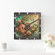 Acoustic Guitar Surrounded Flowers and Butterflies Square Wall Clock